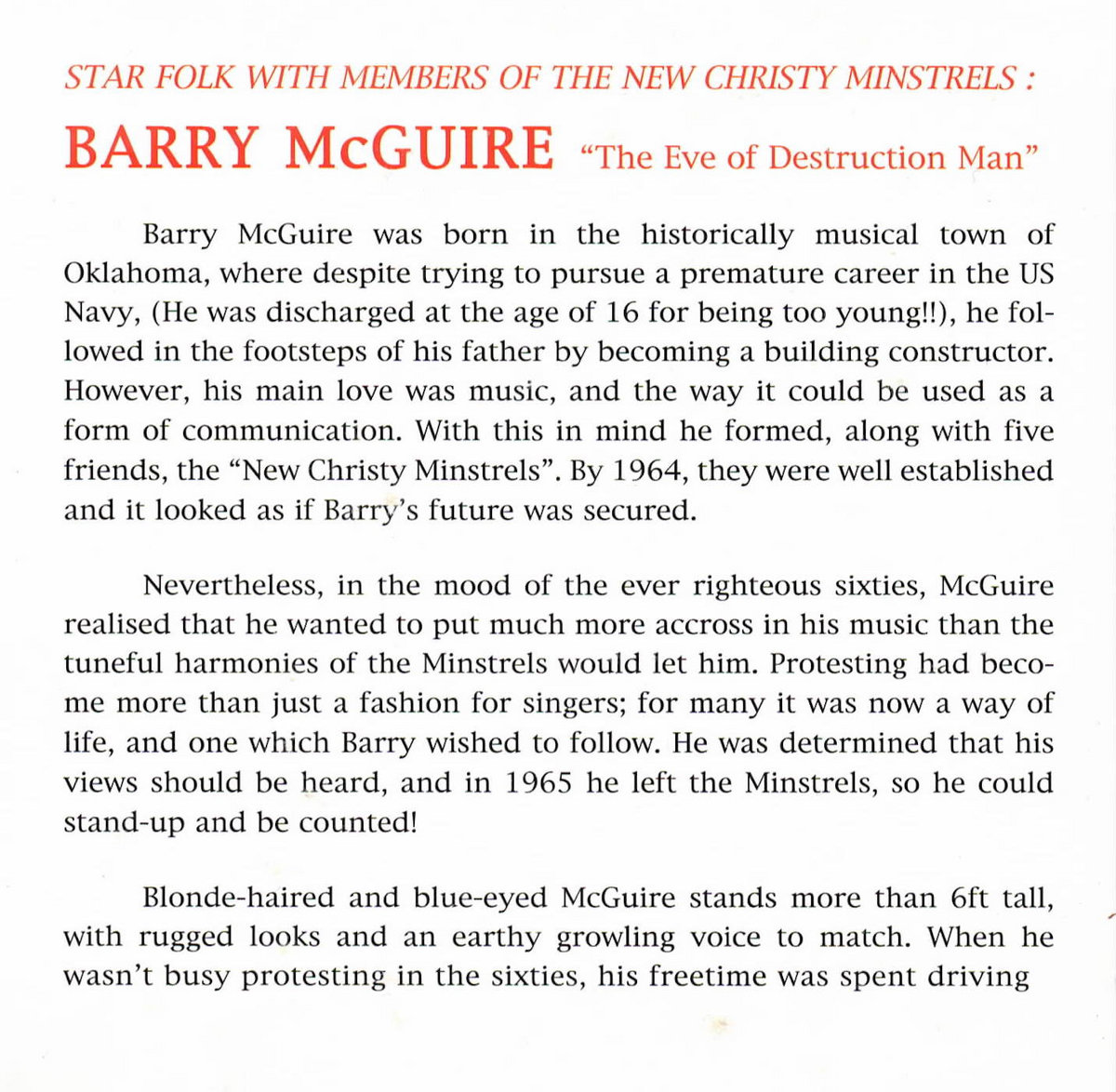 Includes unlimited streaming of The Eve Of Destruction Man - (1965/06/01) Full Album