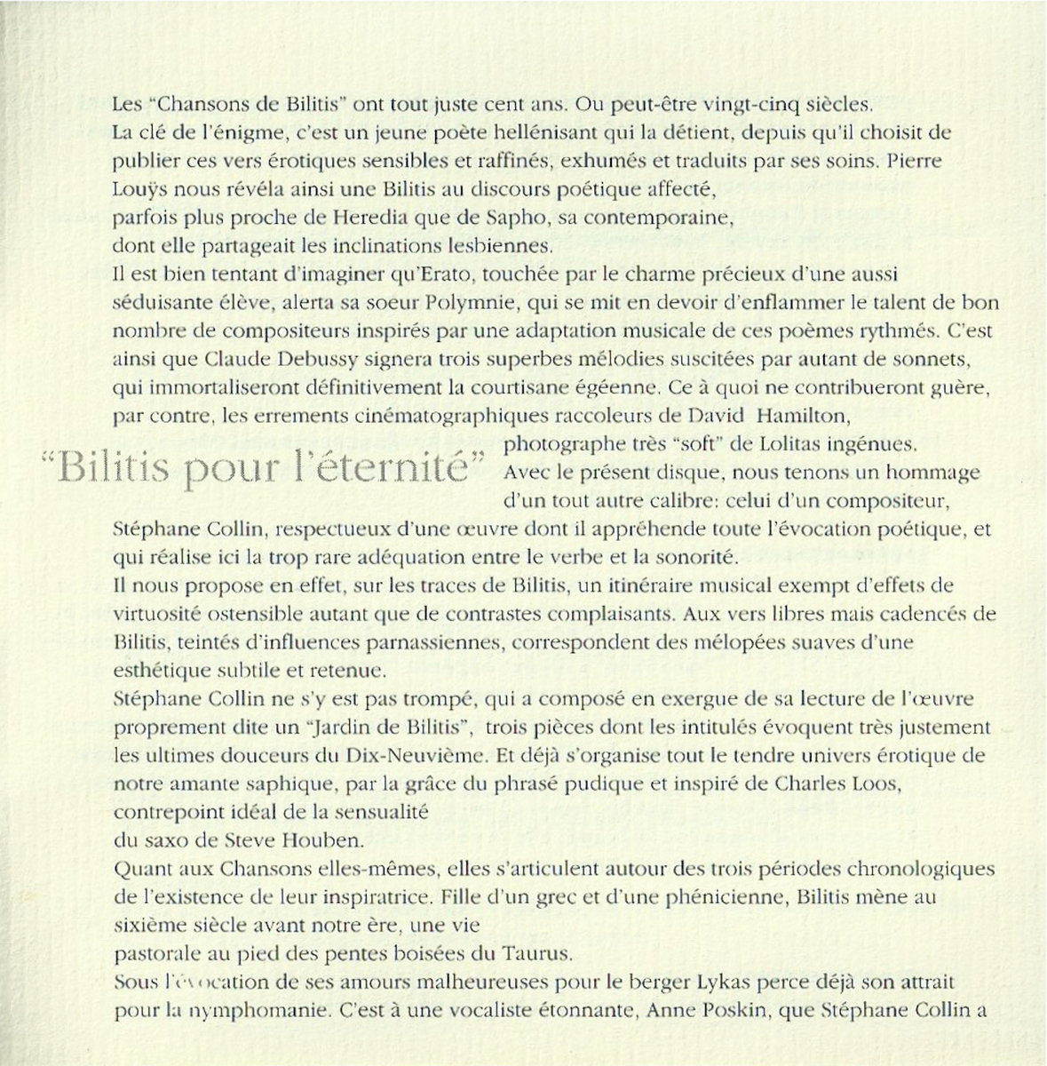 Includes unlimited streaming of Les Chansons De Bilitis - (1994/04/01) Full Album